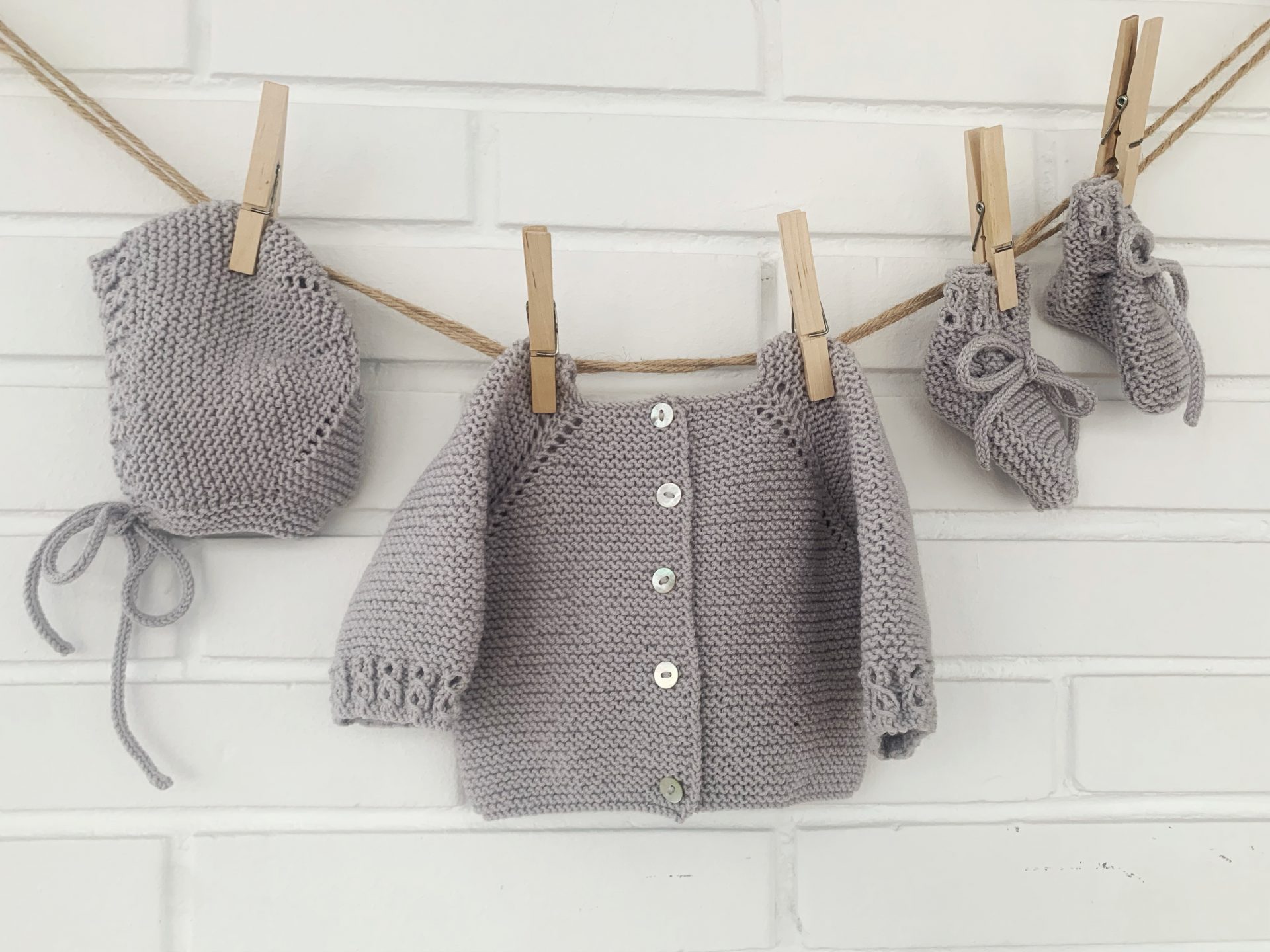 ¿No eres muy de tejer? ¿Quieres que tejamos el conjunto de Ochitos por ti? Ahora ya puedes encargar la chaqueta, la capota y los patucos Ochitos tejidos. Es muy sencillo, solo tienes que elegir tu color: Gris clarito, rosa o azul empolvados.En cuanto a la talla podrás encargarlo de la 0, 3, 6 o 12 meses.