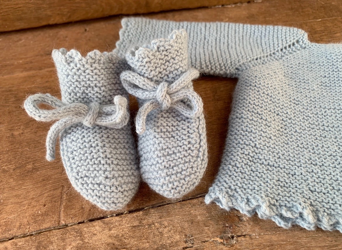 Para completar la canastilla hemos diseñado estos patucos a juego del jersey baby, está tejido con la misma lana y agujas que el jersey para que te resulte más cómodo.